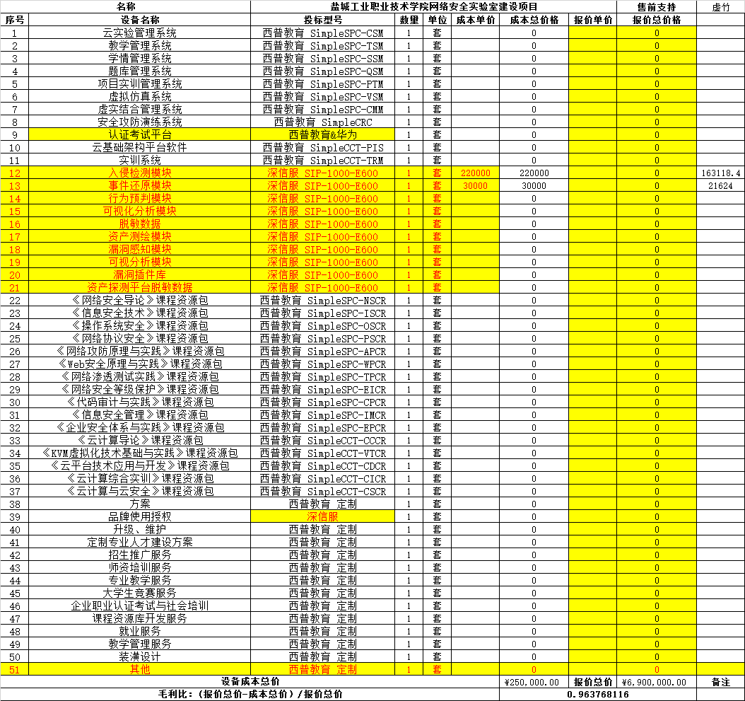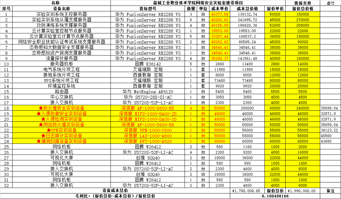 | 2019-9 | 盐城工业职业技术学院 | 2019.12.04 | 2019-026S-2盐城工业职业技术学院网络安全实验室建设项目(分包一) | 199 |